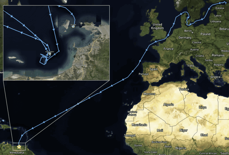 The newly arrived tanker, the Vasily Lanovoy, has previously been deployed to transport condensate linked to Russia’s sanctioned Arctic LNG 2 project – an operation already under heavy scrutiny from U.S. and European regulators. In this latest instance the vessel departed from the Baltic port of Ust-Luga on October 27 traveling across the Atlantic. It arrived at Venezuela’s oil loading complex at Puerto José on November 22.