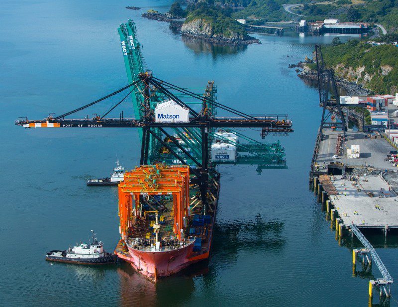 Matson, Inc. this week took delivery of a new 65-ton gantry crane to replace one half its size at the company’s Kodiak Terminal in Alaska.