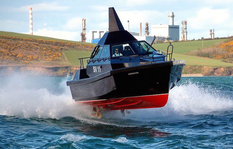 [contextly_sidebar id=”QDrH2pZUEGMC20nTvPwvK6X86WDO58zL”]According to Safehaven Marine, “‘Barracuda’ is a high speed low RCS Interceptor for military and law enforcement roles. A range of different weapons can be concealed below deck and raised up through a hatch when required, which together with specialized design and construction allows for a lower RCS than vessels with exposed weapon arrangements. The design features an all new deep V high speed hull, incorporating a wave piercing bow that will allow for speeds of 35-40kts+. The innovative 11-13m wave piercing hull will also form the basis for new pilot / S.A.R. models. This new design sees the introduction of multiple new technologies including the extensive use of carbon fibre and cored composites in its construction to minimize weight, maximizing speed and economy.”