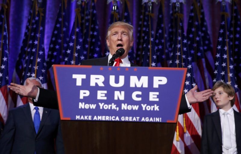 Republican U.S. president-elect Donald Trump speaks at his election night rally in Manhattan, New York, U.S., November 9, 2016. REUTERS/Carlo Allegri