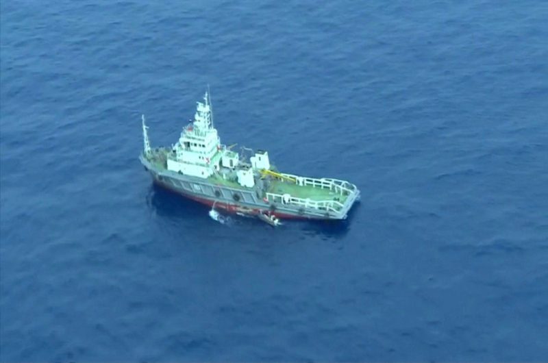 An aerial view of a vessel is seen as rescue teams recover debris of the EgyptAir jet that crashed in the Mediterranean Sea, in this still image taken from video on May 21, 2016. Egyptian Military/Handout