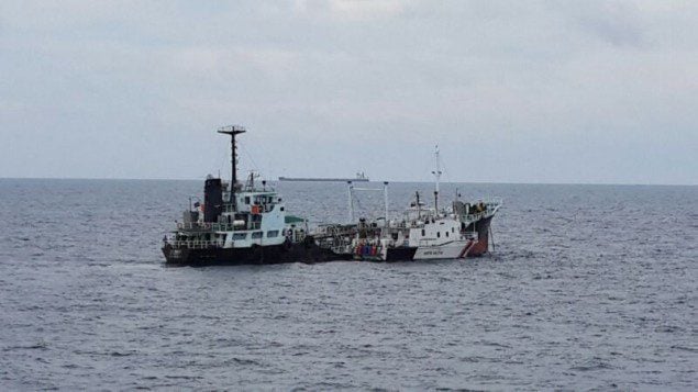 The MT Ai Maru seen with a Malaysian Navy patrol vessel after it was hijacked June 14, 2014 off the coast of Malaysia. Photo courtesy Malaysian Navy