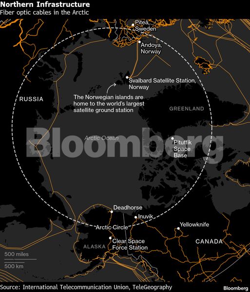 An ideal location to look up at orbit is Svalbard, a Norwegian archipelago that’s the closest sizeable habitation to the North Pole and connected via undersea cable to mainland Norway, a NATO member. The islands are home to Svalsat, the world’s largest polar satellite ground station.