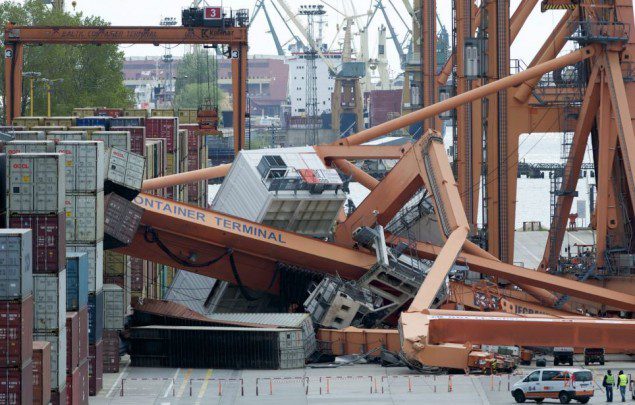 According to a quote by Jesper Waltersson, Communcations Manager at Stena Line, obtained by Swedish newspaper, The Local, “She rammed the stern into the leg of the container crane that collapsed.”