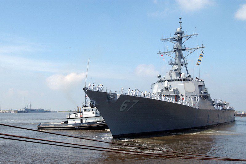 USS Cole (DDG 67) returns to sea after being repaired at Northrop Grumman Ship Systems (NGSS) in Pascagoula, Mississippi, April 19, 2002. U.S. Navy Photo