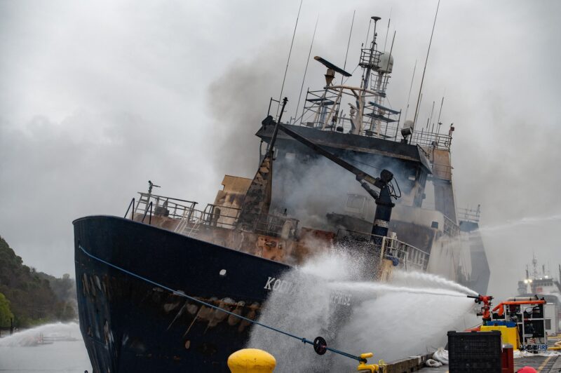 The U.S. Coast Guard, Environmental Protection Agency (EPA), and Tacoma Fire Department are continuing to resposd to a fire that broke out on the fishing vessel, Kodiak Enterprise, while moored at Trident Seafoods in the Hylebos Waterway in Tacoma, Washington.