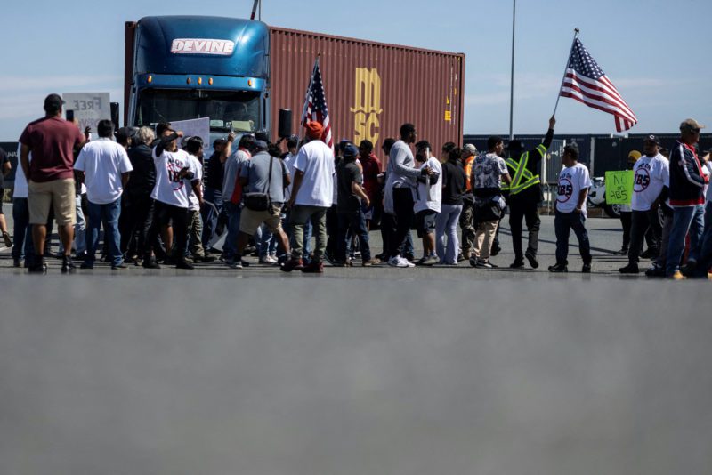 The three California ports handle about half of the nation’s container cargo volume. The trucker protests come as the ILWU, which represents dock workers at those and other U.S. West Coast ports, is in high-stakes contract talks with terminal operators that employ them.