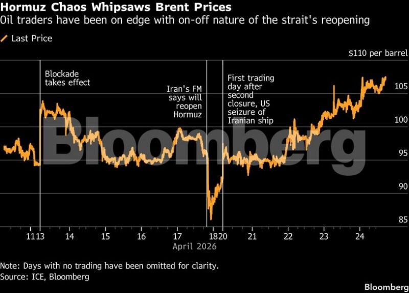 Apr 26, 2026 (Bloomberg) –In early April — after a month of disruption around one of the world’s most important energy chokepoints — US President Donald Trump wrote that with “a little ?more time, we can easily OPEN THE ?HORMUZ STRAIT, TAKE THE OIL, & MAKE A ?FORTUNE.”
