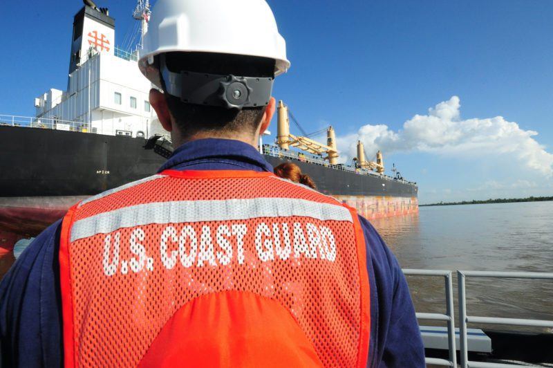 FILE PHOTO: a Port State Control inspection in Nine Mile Anchorage on the lower Mississippi River. U.S. Coast Guard Photo