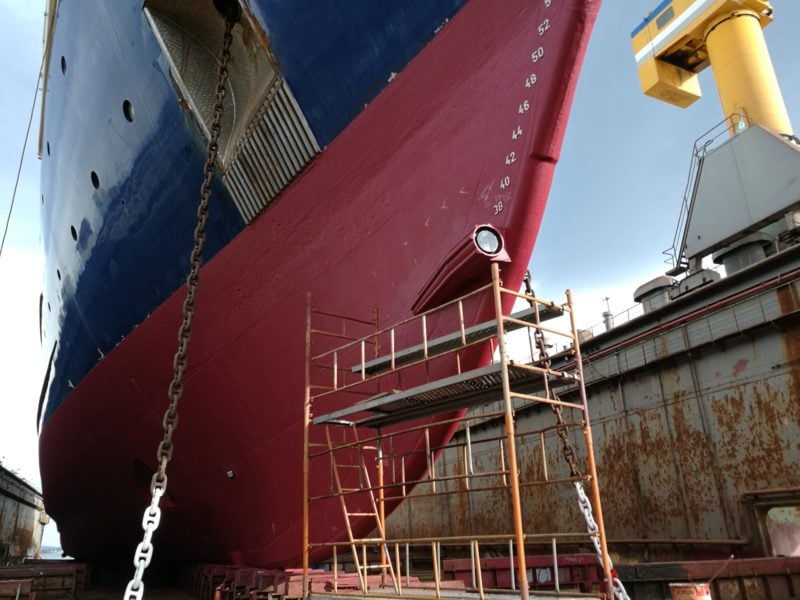 One looming question often asked is: What is the impact on hull performance from adding this fairing? Argos sonars look large when compared with an echosounder, but it is actually relatively small when compared to the size of the vessels on which they are installed. Though there may be a large perceived impact to the vessel’s hydrodynamics, in actuality, it is quite small and not an issue in practice. There have been no reports of vessel performance changes from before to after installation. In fact, hull finishes can have a much bigger impact on the vessel drag coefficient than an Argos sonar.