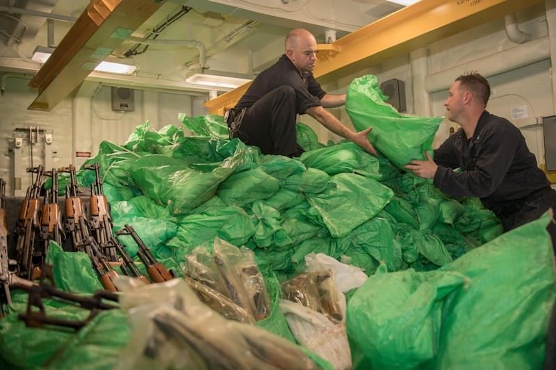 The third seizure was by the French Navy destroyer FS Provence March 20, 2016, and yielded again almost 2,000 AK-47 assault rifles, 64 Dragunov sniper rifles, nine anti-tank missiles and six PK machine guns with bipods.