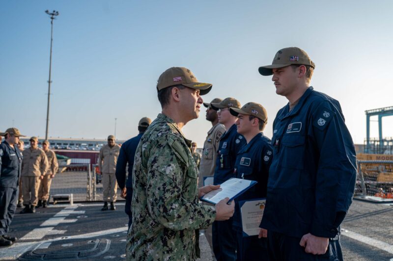 Each sailor on board received the Combat Action Ribbon, a testament to their active participation in combat operations. The decoration serves as a recognition of the bravery and readiness displayed by the crew in the face of emerging threats in a volatile region.