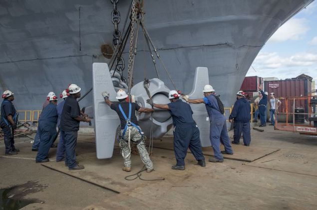 Realizing that two ship’s shared the exact same anchors, albeit of very different ages, engineers decided to swap out one of Lincoln’s anchors with one of the Enterprises anchors. The anchor was cast in 1962 and weighs in at 30 tons.