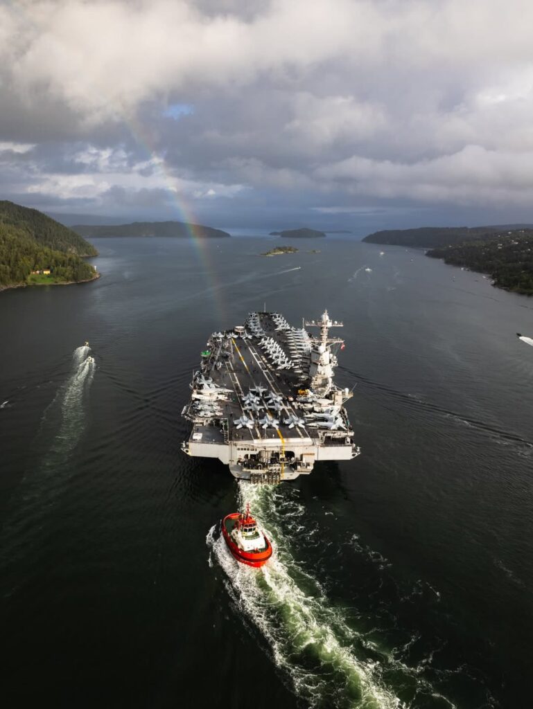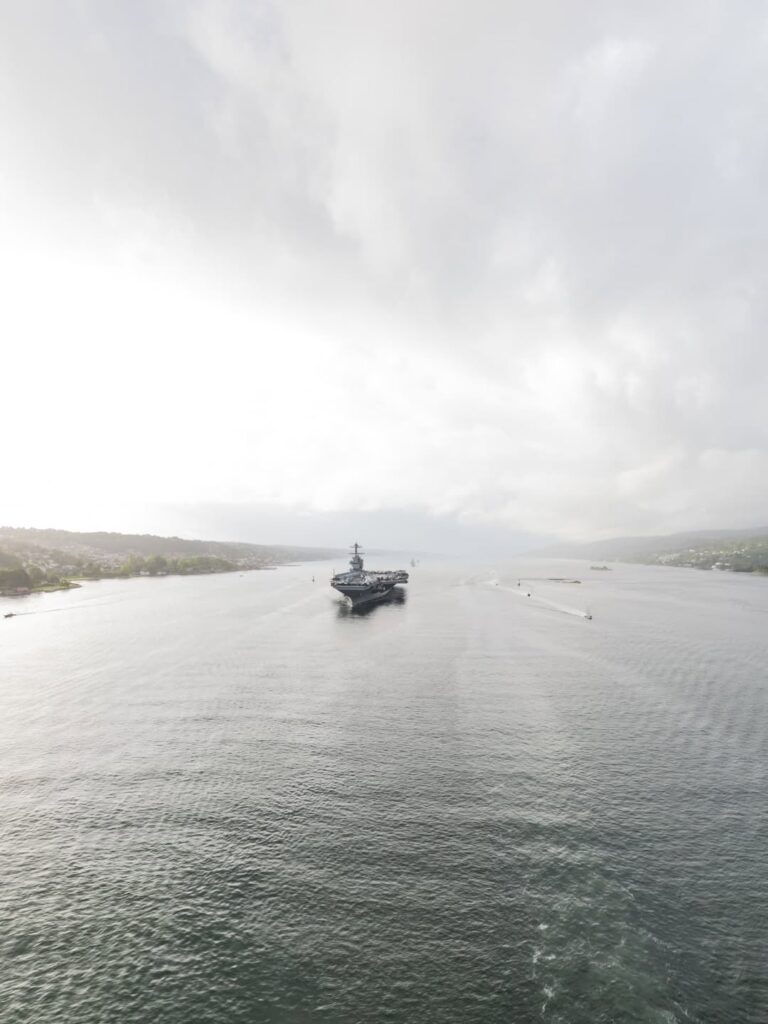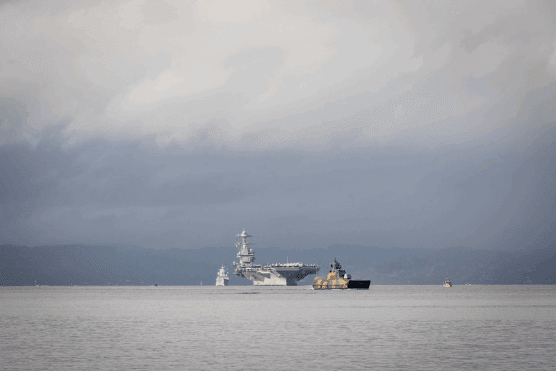 The U.S. Navy aircraft carrier USS Gerald R. Ford arrived in Norway’s capital, wrapping up a month-long joint exercise with NATO forces in the Norwegian and Barents Sea in a show of strength. The drills in the Sub-Arctic and Arctic region serve to reinforce NATO’s High North posture. A flotilla of naval vessels, including Norwegian frigate HNoMS Thor Heyerdahl, escorted the aircraft carrier into the Oslo fjord.
