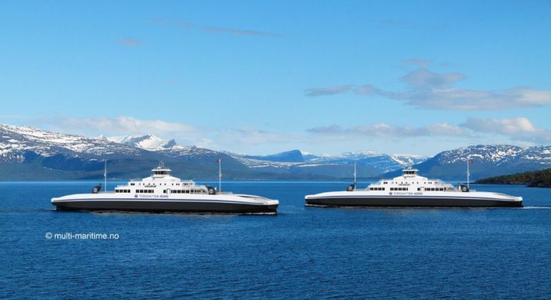 The new car and passenger ferries are designed for environmentally friendly operations in the Norwegian fjords, with a total capacity that is able to accommodate up to 180 cars and 550 passengers and crew. The ferries of Multi Maritime MM 125FD design will measure 130 meters in length with a beam of 20.7 meters, and will have a speed of approximately 18 knots.