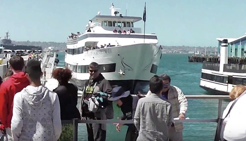 A scary moment captured on video Thursday as a harbor cruise ship slammed into a crowded pier in San Diego, sending waiting tourists scrambling to get out of the way.