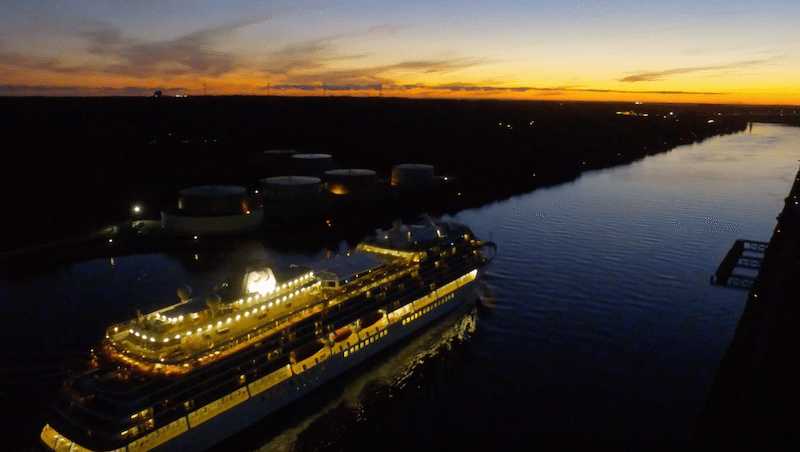 The 750-foot cruise ship Viking Star traversed the Cape Cod Canal on Wednesday night becoming one of the largest ships ever to make the transit.